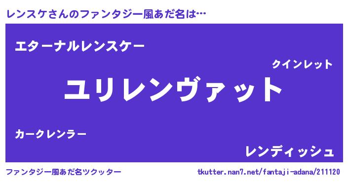| 男性向けラノベタイトル風あだ名 | 『転生したらレンスケだった件』 |