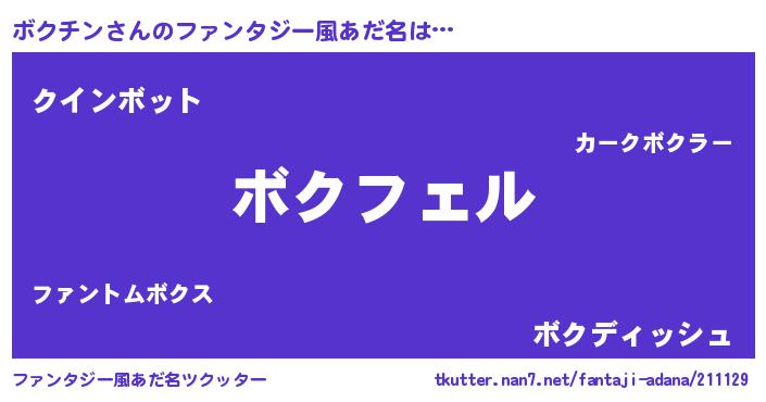 | 男性向けラノベタイトル風あだ名 | 『ボクチンの憂鬱』 |