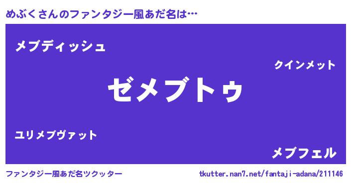 | 意味不明あだ名 | 『自称めぶく』『永久保存めぶく』 |