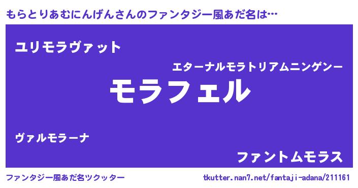 | 欧米人風あだ名 | 『アンジェラ・もらとりあむにんげん』 |
