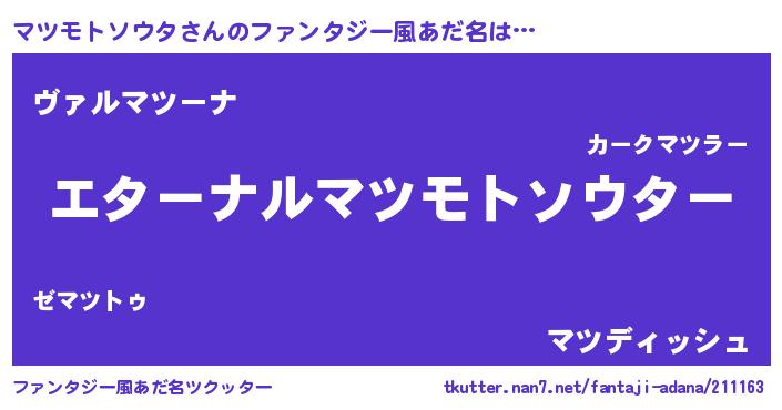 | 欧米人風あだ名 | 『マツモトソウタクリステル』 |