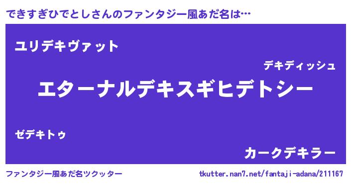 | 欧米人風あだ名 | 『できすぎひでとしクリステル』 |