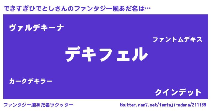 | ヒーロー風カッコイイあだ名 | 『スーパーデキスギヒデトシ』 |