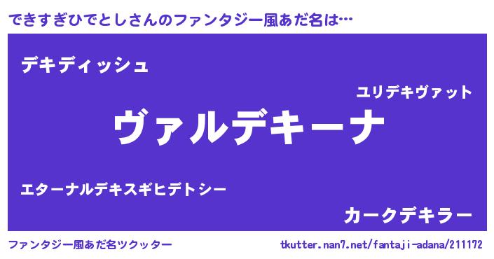 | 意味不明あだ名 | 『住所不定無職できすぎひでとし(50歳)』 |