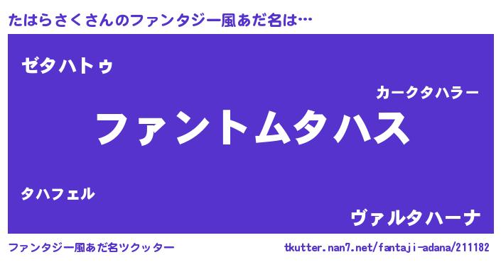 | ヒーロー風カッコイイあだ名 | 『魔戒騎士タハ』『仮面タハダー』 |