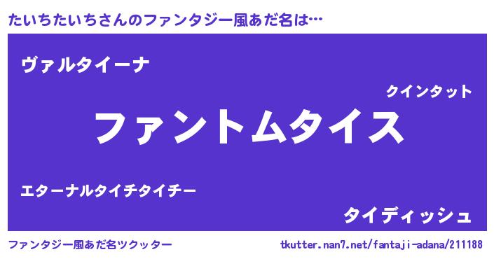 | 男性向けラノベタイトル風あだ名 | 『たいちたいちの嫁は女の子じゃないと思った?』 |