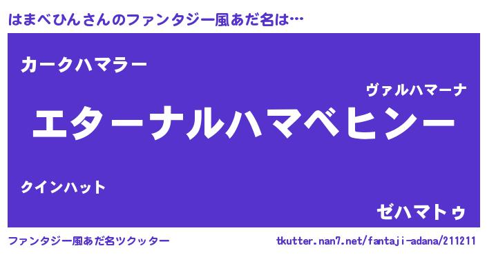 | 欧米人風あだ名 | 『はまべひんクリステル』 |