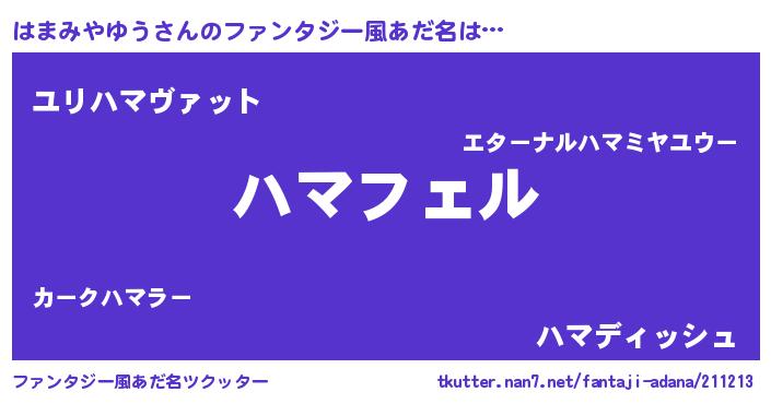 | ヒーロー風カッコイイあだ名 | 『スーパーハマミヤユウ』『幻影騎士ハマ』 |