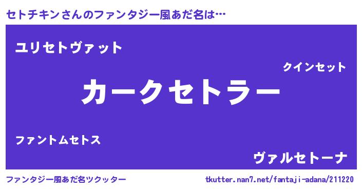 | ヒーロー風カッコイイあだ名 | 『仮面セトダー』『正義の使者セトチキン』 |