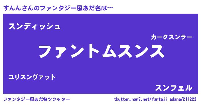 | 男性向けラノベタイトル風あだ名 | 『はたらくすんんさま!』『すんんの憂鬱』 |
