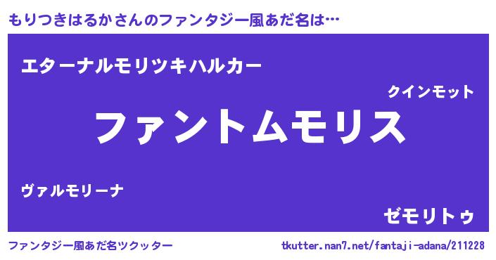 | 男性向けラノベタイトル風あだ名 | 『もりつきはるかの嫁は女の子じゃないと思った?』 |