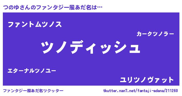 | 男性向けラノベタイトル風あだ名 | 『つのゆという概念が存在しない退屈な世界 』 |