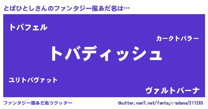 | ヘコむあだ名 | 『とばひとし(遠い目)』『とばにゅー』 |