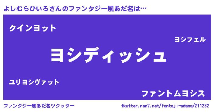 | ヘコむあだ名 | 『よしむらひいろ(笑)』『よしぷりん』 |