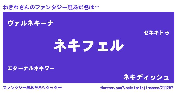 | 男性向けラノベタイトル風あだ名 | 『ねきわの憂鬱』『魔弾の王とねきわ』 |