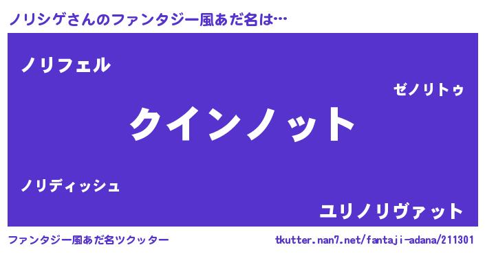 | 男性向けラノベタイトル風あだ名 | 『おまえをオタクにしてやるから、俺をノリシゲにしてくれ! 』 |