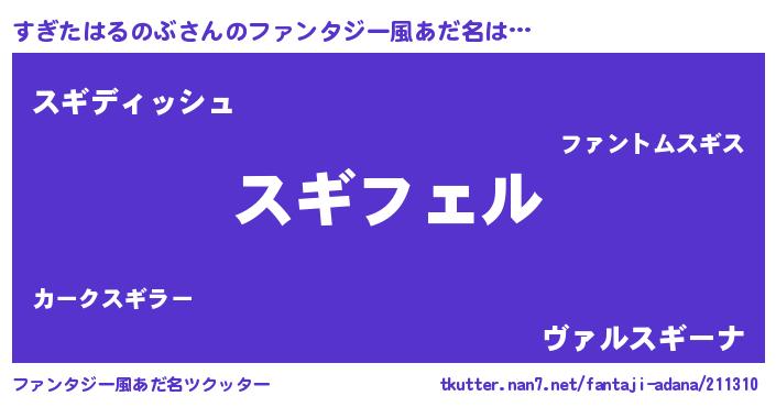 | 胡散臭い通販商品みたいなあだ名 | 『必ず成功するブレスレット…その名も「すぎたはるのぶ」』 |