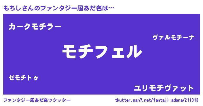 | 男性向けラノベタイトル風あだ名 | 『もちしの憂鬱』『はたらくもちしさま!』 |