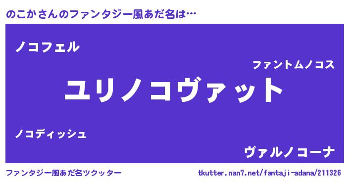 | 女子向けラノベタイトル風あだ名 | 『のこかの玉の輿計画!』 |
