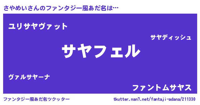 | ヒーロー風カッコイイあだ名 | 『スーパーサヤメイ』『魔戒騎士サヤ』 |