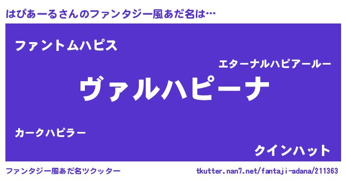 | 男性向けラノベタイトル風あだ名 | 『この素晴らしい世界にはぴあーるを!』 |