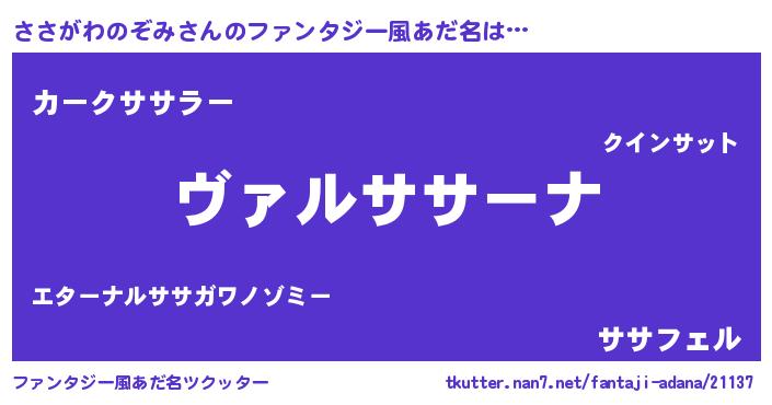 | 女子向けラノベタイトル風あだ名 | 『乙女ゲームの破滅フラグしかない悪役ささがわのぞみに転生してしまった…』 |