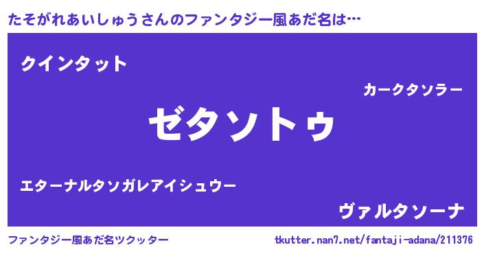 | 意味不明あだ名 | 『自称たそがれあいしゅう』 |