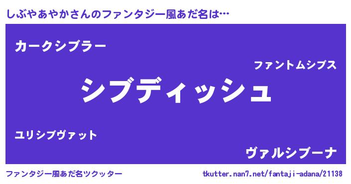 | 意味不明あだ名 | 『永久保存しぶやあやか』 |
