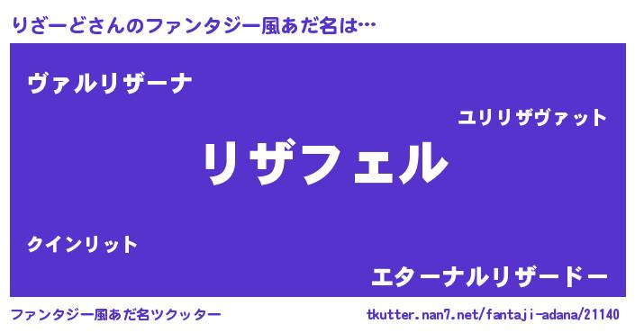 | 男性向けラノベタイトル風あだ名 | 『りざーどの憂鬱』『魔弾の王とりざーど』 |
