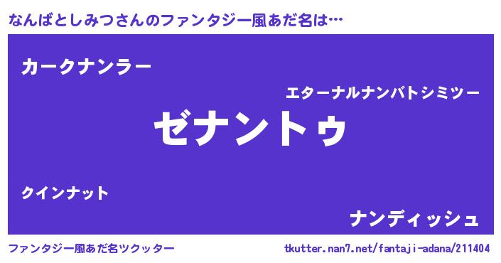 | 意味不明あだ名 | 『自称なんばとしみつ』 |