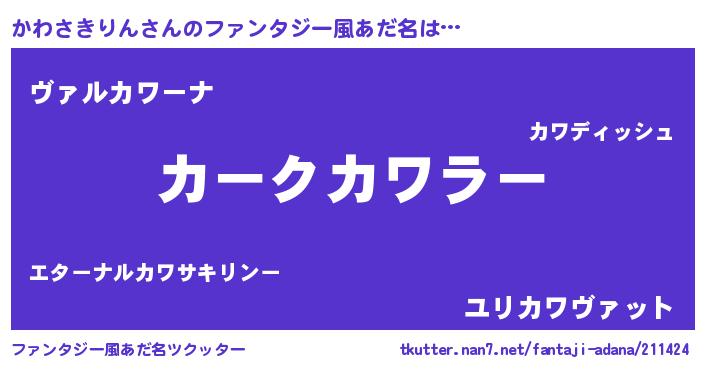 | ヒーロー風カッコイイあだ名 | 『仮面カワダー』『ネオカワサキリン』 |