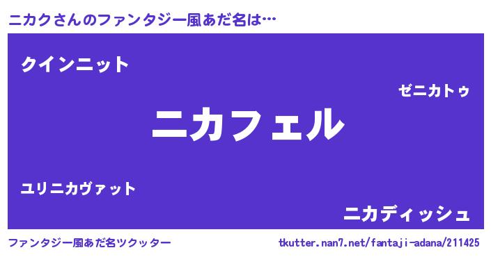 | 男性向けラノベタイトル風あだ名 | 『ニカクの憂鬱』『はたらくニカクさま!』 |