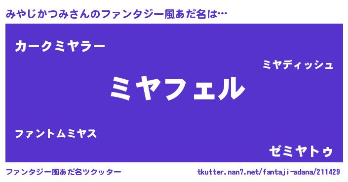 | 自動車の名前っぽいあだ名 | 『ミヤティマ』『フェミーヤ』 |