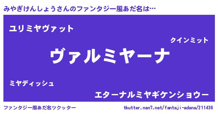 | 男性向けラノベタイトル風あだ名 | 『この素晴らしい世界にみやぎけんしょうを!』 |