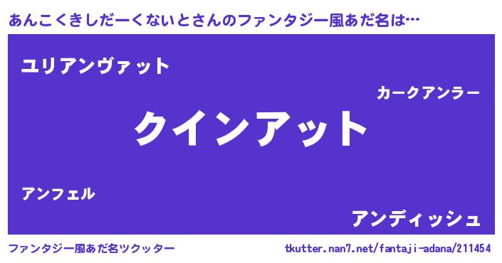| 男性向けラノベタイトル風あだ名 | 『おまえをオタクにしてやるから、俺をあんこくきしだーくないとにしてくれ! 』 |