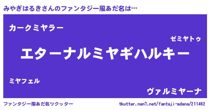 | 欧米人風あだ名 | 『みやぎはるきクリステル』 |