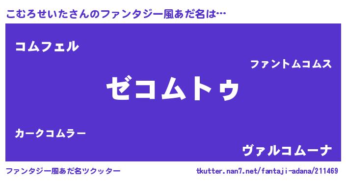 | 意味不明あだ名 | 『自称こむろせいた』 |