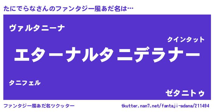 | ポケモン風あだ名 | 『タニデダネ』『ターニイ』 |