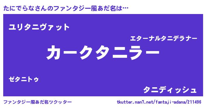 | ヒーロー風カッコイイあだ名 | 『ネオタニデラナ』『スーパータニデラナ』 |