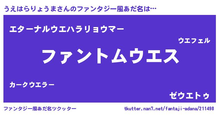 | ポケモン風あだ名 | 『ヒウエハラリョウマ』『ウエハダネ』 |