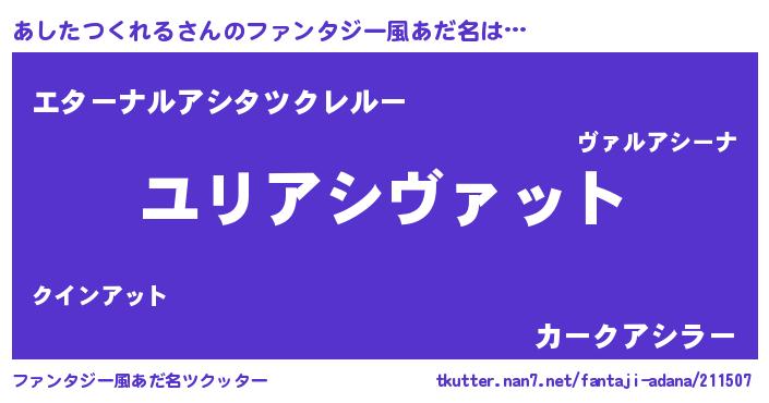 | 男性向けラノベタイトル風あだ名 | 『アシタツクレルスレイヤー』 |