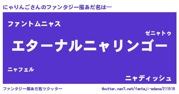 | 欧米人風あだ名 | 『にゃりんごクリステル』 |