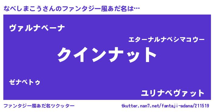 | 男性向けラノベタイトル風あだ名 | 『おまえをオタクにしてやるから、俺をなべしまこうにしてくれ! 』 |