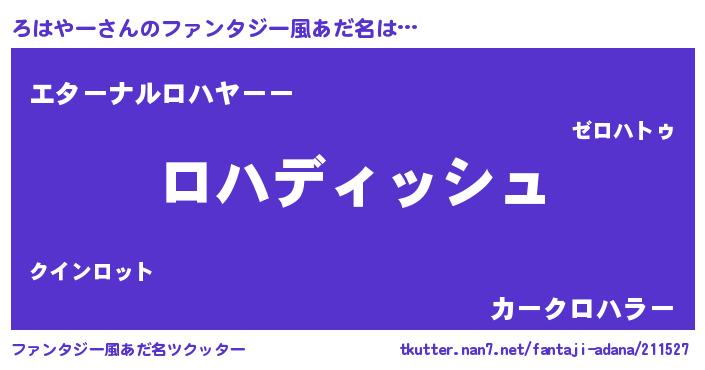 | 伝説のあだ名 | 『古文書に記された吟遊詩人ろはやー』 |