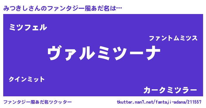 | 男性向けラノベタイトル風あだ名 | 『この素晴らしい世界にみつきしを!』 |