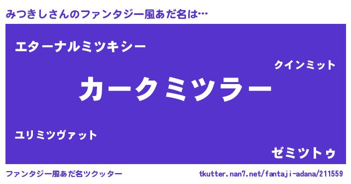 | 男性向けラノベタイトル風あだ名 | 『うちのみつきしが世界を掌握している!』 |