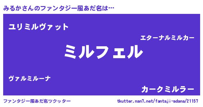 | 可愛いあだ名 | 『みんみん』『みるぷりん』 |