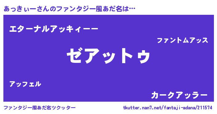 | ヒーロー風カッコイイあだ名 | 『ウルトラ戦士アッキィー』 |