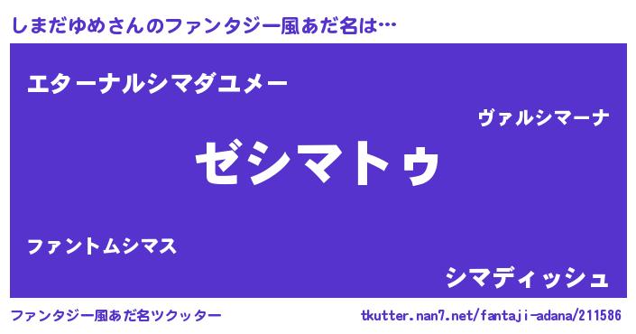 | 意味不明あだ名 | 『自称しまだゆめ』『永久保存しまだゆめ』 |