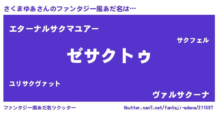 | 男性向けラノベタイトル風あだ名 | 『さくまゆあに滅ぼされるだけの簡単なお仕事です』 |